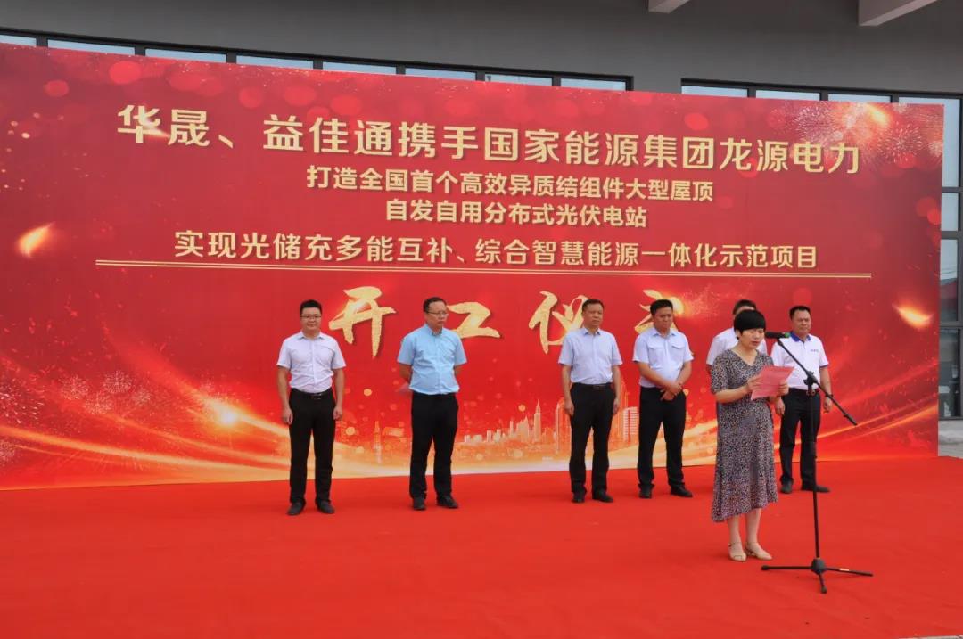 9月27日上午,由益佳通、華晟新能源攜手國家能源集團龍源電力打造的全國首個高效異質結組件大型屋頂自發自用分布式光伏電站項目在益佳通廠內隆重舉行開工儀式典禮。現場參加開工儀式的領導有:宣城經開區黨工委委員,管委會副主任羅正軍、經開區黨工委委員,系統工會主席余紅、投資服務中心主任丁光華、開盛建設投資集團董事長張增華、國家能源集團龍源電力安徽公司副總經理孫明、安徽益佳通電池有限公司副總經理楊云求、華晟新能源科技有限公司總經理徐曉華和各位來賓;開工儀式由華晟新能源總經理徐曉華主持。